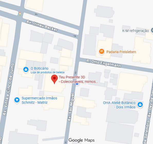 Localizados no coração de Dois Irmãos, RS, na Avenida São Miguel 1230 - sala 03, nossa loja é a primeira especializada em personalizados 3D na cidade. Com atendimento de segunda a sexta, das 9h às 12h e 13h30 às 18h30, e aos sábados das 8h às 12h, estamos prontos para transformar suas ideias em realidade.
